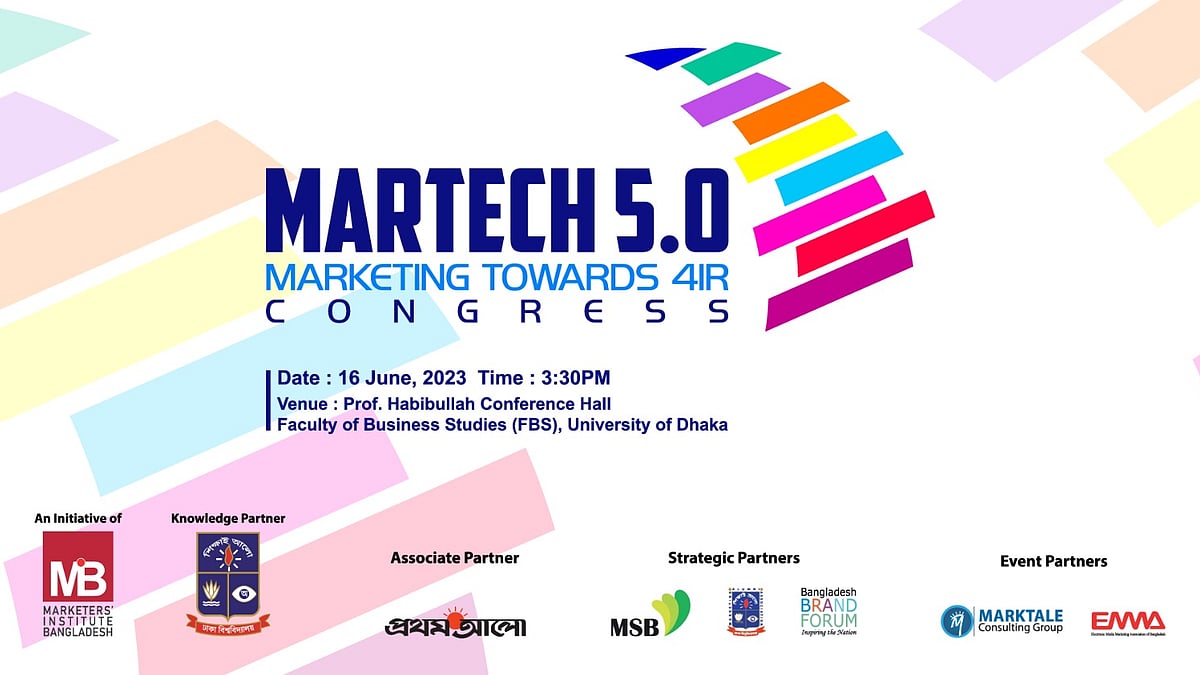‘চতুর্থ শিল্পবিপ্লব অভিমুখে মার্কেটিং’ স্লোগানে পেশাজীবীদের সংগঠন মার্কেটার’স ইনস্টিটিউট, বাংলাদেশ আয়োজন করছে ‘মার্কটেক ৫.০ কংগ্রেস ২৩’ শীর্ষক অনুষ্ঠান। আগামীকাল শুক্রবার বেলা ৩টা ৩০ মিনিটে অনুষ্ঠানটি ঢাকা বিশ্ববিদ্যালয়ের ব্যবসায় অনুষদ বিভাগে অনুষ্ঠিত হবে।