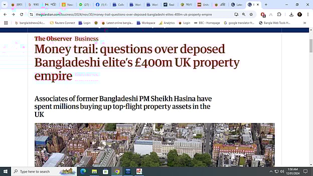 যুক্তরাজ্যে বাংলাদেশের ক্ষমতাচ্যুত প্রধানমন্ত্রী শেখ হাসিনার ঘনিষ্ঠ বলয়ের মধ্যে থাকা সাবেক মন্ত্রীসহ রাজনীতিক ও ব্যবসায়ীদের বিপুল পরিমাণ সম্পত্তির সন্ধান পাওয়া গেছে। যুক্তরাজ্যের আবাসন খাতে তাঁদের বিনিয়োগ করা সম্পত্তির পরিমাণ ৪০ কোটি পাউন্ডের (৬ হাজার কোটি টাকা) বেশি। বাংলাদেশ থেকে পাচার করা অর্থ দিয়ে এসব সম্পত্তি কেনা হয়েছে বলে অভিযোগ রয়েছে।