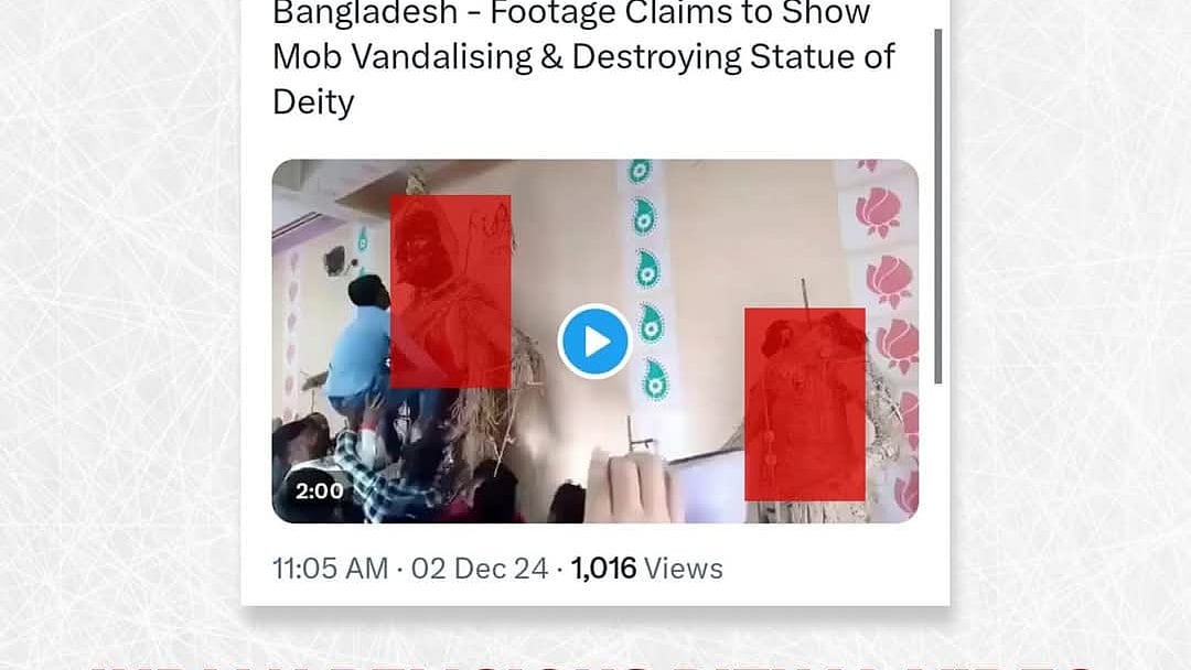 ‘বাংলাদেশে হিন্দুদের মন্দিরে হামলা ও প্রতিমা ভাঙচুর করা হয়েছে’—এমন দাবি জানিয়ে একটি ভিডিও ফুটেজ নিজেদের এক্স অ্যাকাউন্টে প্রচার করেছে সংবাদমাধ্যম আরটি ইন্ডিয়া। এ বিষয়ে ফ্যাক্ট চেক বা তথ্য যাচাই সংস্থা রিউমার স্ক্যানার জানিয়েছে, এ তথ্য সঠিক নয়। আর ভিডিওটি বাংলাদেশের নয় বরং ভারতের পশ্চিমবঙ্গের।