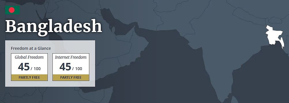 বাংলাদেশ সম্পর্কে বলা হয়েছে, গণ–অভ্যুত্থানে আওয়ামী লীগ সরকার ক্ষমতাচ্যুত হওয়ার পর বাংলাদেশে ইন্টারনেট স্বাধীনতা উল্লেখযোগ্যভাবে উন্নত হয়। অন্তর্বর্তী সরকার ক্ষমতায় এসে কিছু ইতিবাচক সংস্কার কার্যক্রমের উদ্যোগ নেয়। তারা দমনমূলক প্রথার অবসান ঘটায়। জুলাই গণ–অভ্যুত্থানে আওয়ামী লীগের দমন–পীড়ন, মানুষের মৃত্যু, ইন্টারনেট বন্ধ করে দেওয়ার বিষয়ও এই প্রতিবেদনে উঠে আসে। এতে আরও বলা হয়, অন্তর্বর্তী সরকার বাংলাদেশ টেলিযোগাযোগ নিয়ন্ত্রণ কমিশনের (বিটিআরসি) নতুন চেয়ারম্যান হিসেবে মুহাম্মদ এমদাদ-উল-বারীকে নিয়োগ দেয়, যিনি ইন্টারনেট বন্ধ প্রতিরোধে নীতিগত পরিবর্তনের উদ্যোগ নেন।
