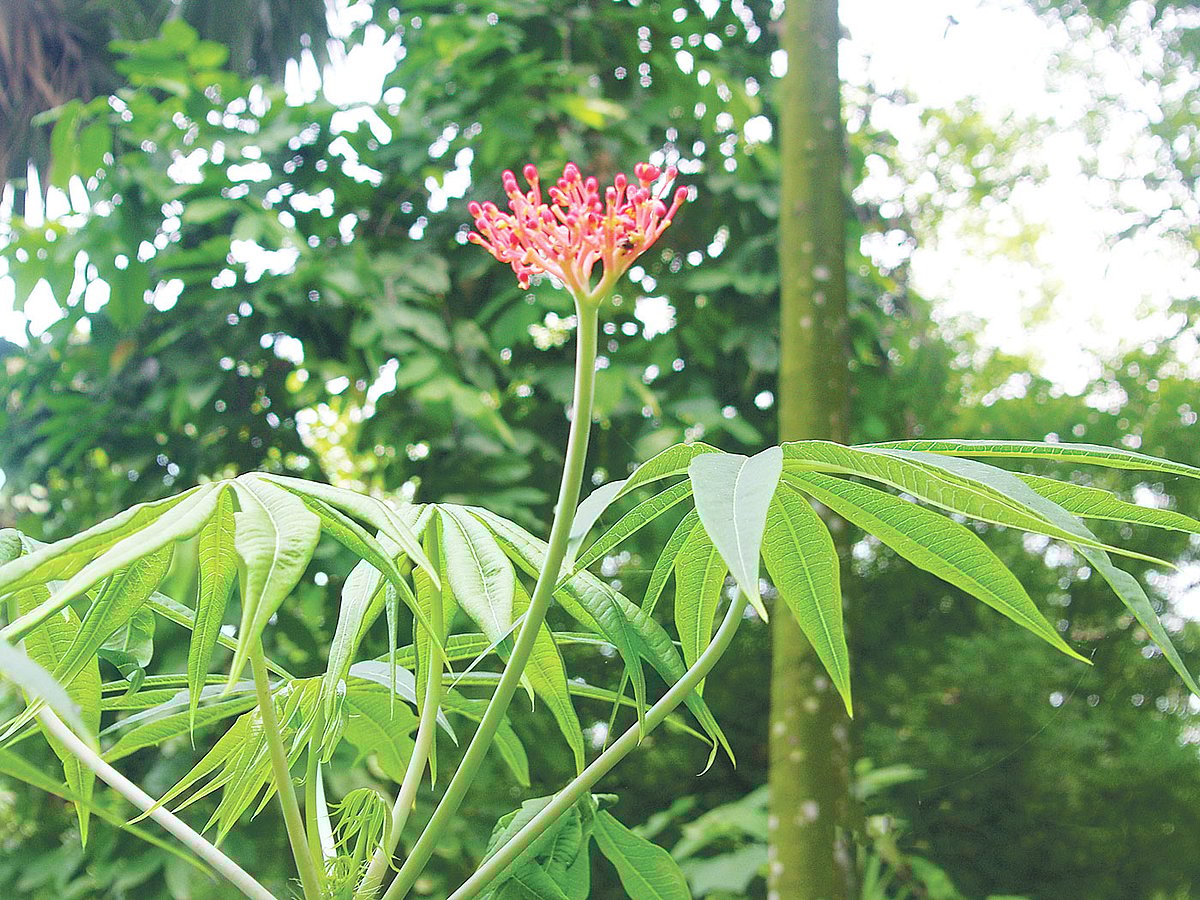 এই গাছ দেখে প্রথমে ভেবেছিলাম কাসাভা আলুর গাছ। পাতার গড়ন প্রায় অভিন্ন বলেই এই ভ্রম। তবে ভালোভাবে খুঁটিয়ে দেখলে দুই গাছের পার্থক্য স্পষ্ট হয়ে ওঠে; যার প্রধান বিশেষত্ব ফুলে। গাছটি জেট্রফা নামে পরিচিত হলেও আমাদের দেশে স্বীকৃত কোনো বাংলা নাম নেই। ইংরেজি নাম কোরাল বুশ বা ফ্রেঞ্চ ফিজিক নাট।
