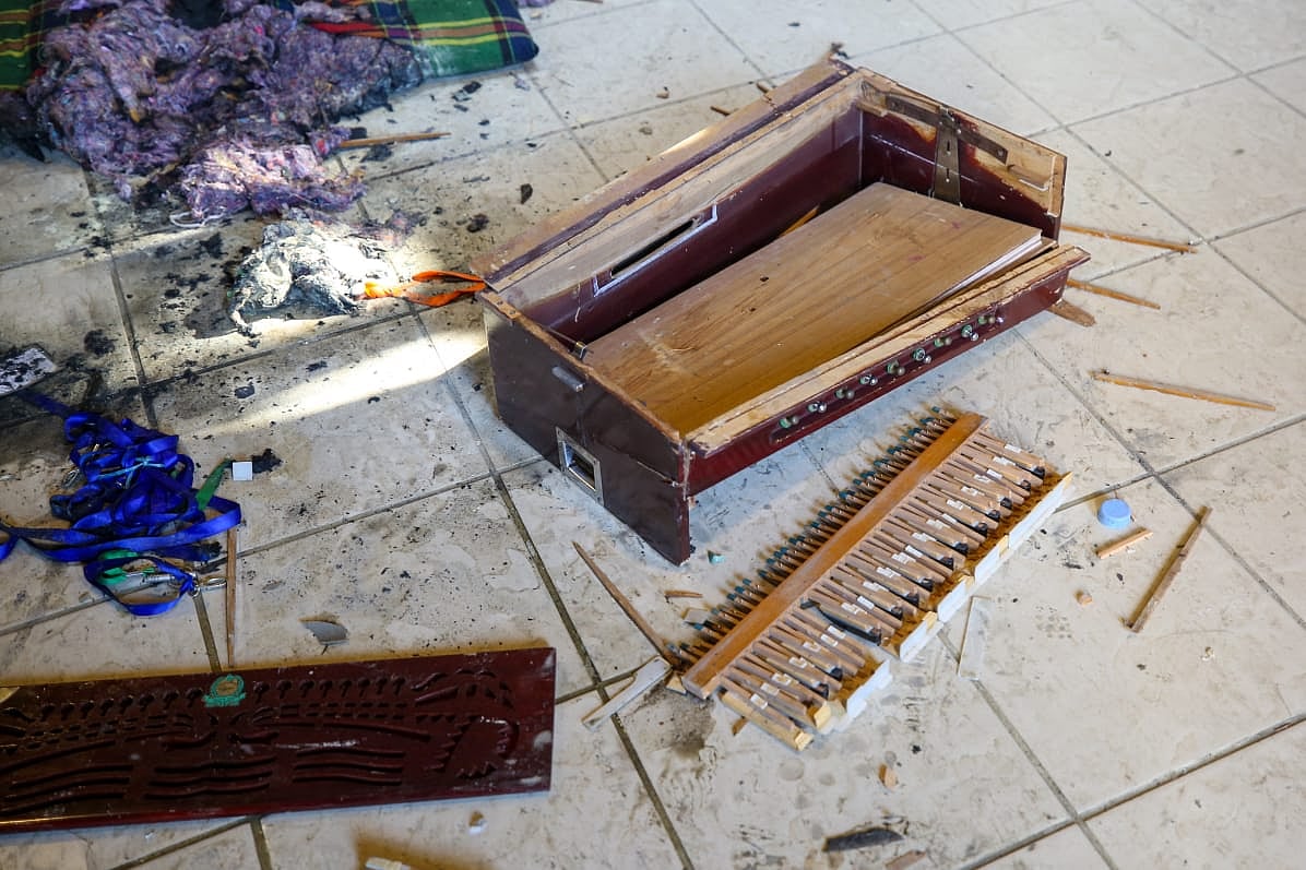 আজ শুক্রবার ধানমন্ডির ছায়ানট সংস্কৃতি–ভবনে গিয়ে দেখা গেছে, ছয়তলা ভবনটির প্রতিটি তলাতেই ভাঙচুর চালানো হয়েছে। হামলাকারীরা ভবনের নিচের তলায় অগ্নিসংযোগ করেছে। ব্যাপক তাণ্ডব চালিয়েছে ভেতরের প্রতিটি তলায়। তারা শ্রেণিকক্ষগুলোর সিসি ক্যামেরা, কম্পিউটার, আসবাব তছনছ ও ভাঙচুর করেছে। বিশেষ করে তাদের আক্রোশ ছিল বাদ্যযন্ত্রগুলোর প্রতি। এ ছাড়া বেশ কিছু ল্যাপটপ ও বৈদ্যুতিক সরঞ্জামও লুটপাট করেছে।