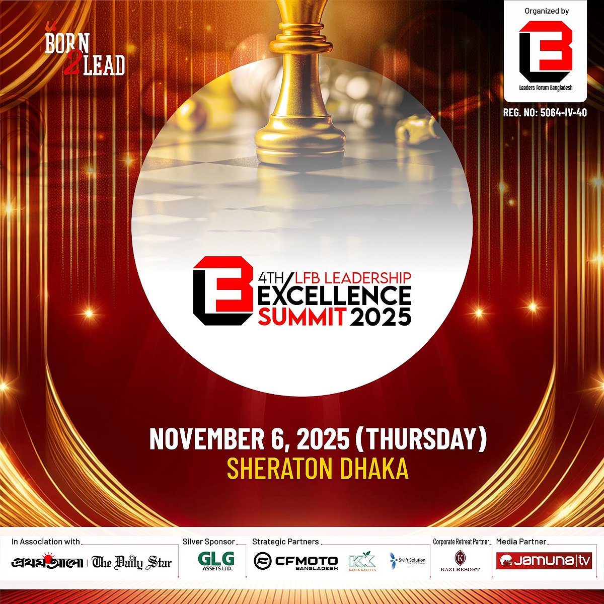 ঢাকাভিত্তিক একটি অরাজনৈতিক আন্তর্জাতিক সংগঠন ‘লিডার্স ফোরাম বাংলাদেশ (এলএফবি)’ আগামী ৬ নভেম্বর ঢাকার শেরাটন হোটেলে চতুর্থ এলএফবি লিডারশিপ এক্সিলেন্স সামিট ২০২৫ আয়োজনের জন্য প্রস্তুত। বহুল প্রতীক্ষিত এ অনুষ্ঠান সন্ধ্যা ৬টা থেকে রাত ১০টা পর্যন্ত চলবে এবং এতে ২৩টি বিভিন্ন শিল্প খাতের পাঁচ শতাধিক সিনিয়র করপোরেট লিডার, নীতিনির্ধারক ও পেশাদার ব্যক্তি অংশগ্রহণ করবেন। এবারের সামিটের সহযোগী অংশীদার হিসেবে রয়েছে প্রথম আলো ও দ্য ডেইলি স্টার এবং মিডিয়া পার্টনার হিসেবে রয়েছে যমুনা টিভি।