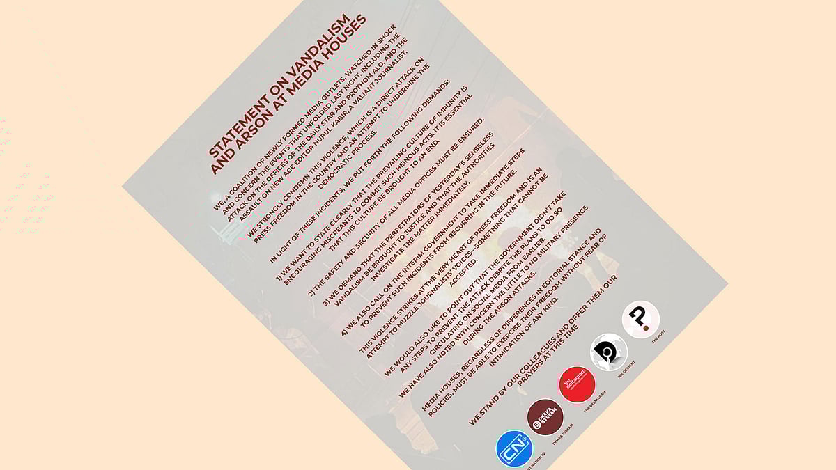 বিবৃতিতে বলা হয়, ‘আমরা এই সহিংসতার তীব্র নিন্দা জানাই। এটি দেশের সংবাদমাধ্যমের স্বাধীনতার ওপর সরাসরি আঘাত এবং গণতান্ত্রিক প্রক্রিয়াকে ক্ষুণ্ন করার একটি সুস্পষ্ট চেষ্টা।’ এতে আরও বলা হয়, বিদ্যমান দায়মুক্তির সংস্কৃতি দুষ্কতকারীদের এ ধরনের জঘন্য অপরাধ সংঘটনে উৎসাহিত করছে। তাই এই সংস্কৃতির অবসান জরুরি।