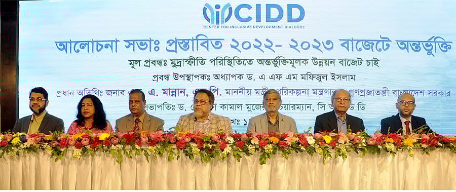 সিআইডিডির মহাসচিব ও সাউথইস্ট বিশ্ববিদ্যালয়ের উপাচার্য এ এফ এম মফিজুল ইসলাম ‘মুদ্রাস্ফীতি পরিস্থিতিতে অন্তর্ভুক্তিমূলক উন্নয়ন বাজেট চাই’ শিরোনামে মূল প্রবন্ধ উপস্থাপন করেন। তিনি বলেন, আগামী ২০২২-২৩ অর্থবছরে উচ্চ মূল্যস্ফীতি দেখা দিতে পারে। কারণ হিসেবে তিনি বলেন, বাংলাদেশ এখন রাশিয়া ও ইউক্রেন থেকে গম আমদানি করতে পারছে না, রাশিয়া ও বেলারুশ থেকে সার আমদানি করতে পারছে না; আবার ডলারের বিপরীতে টাকার অবমূল্যায়ন হচ্ছে। আমদানি কাঁচামালের দাম বেড়ে যাচ্ছে, জাহাজ ভাড়া বাড়ছে, আসছে স্বাভাবিকের চেয়ে বেশি মাত্রার বন্যা। আছে বৈশ্বিক মন্দার শঙ্কা। এসব তথ্য একত্র করলে দাঁড়ায়, ২০২২-২৩ অর্থবছরে তেড়ে আসতে পারে ভয়াবহ মূল্যস্ফীতি।