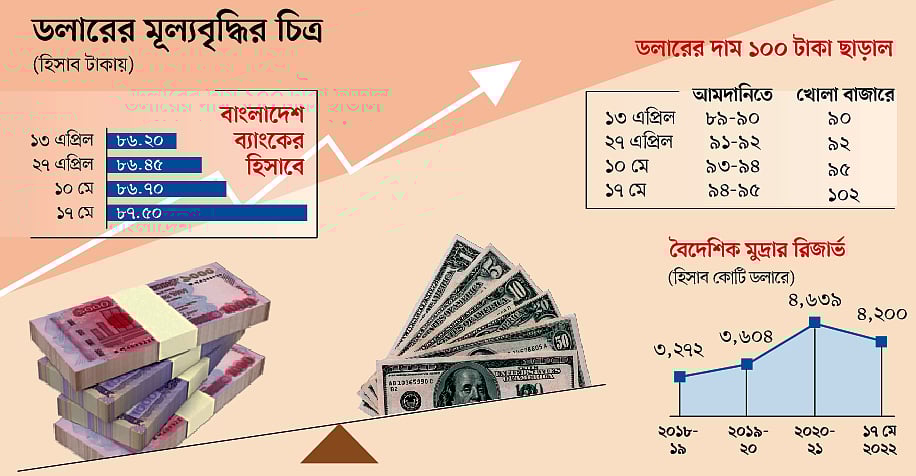 ডলারের দর বেড়ে যাওয়া মানেই আমদানি ব্যয় বৃদ্ধি। বাংলাদেশে রপ্তানির তুলনায় আমদানি বেশি। বিশেষ করে বিশ্ববাজারে জ্বালানি তেল, ভোজ্যতেল, সার, গমসহ প্রায় সব ধরনের পণ্য বেশি দামে আমদানি করতে হচ্ছে। আর এর মাধ্যমেই এখন মূল্যস্ফীতিও আমদানি হচ্ছে। যুক্তরাষ্ট্রসহ উন্নত দেশগুলো মূল্যস্ফীতির চাপ কমাতে নীতিনির্ধারণী সুদের হার বাড়িয়েছে। বাংলাদেশের পক্ষে সুদহার কমানোর সুযোগ কম। কেননা, কোভিড-১৯–এর সময় অর্থনীতি চাঙা রাখতে বিশ্বের বেশির ভাগ দেশ প্রণোদনা হিসেবে ব্যবসায়ীদের অর্থ দিয়েছে। সেই অর্থ মুদ্রা সরবরাহ বাড়িয়ে দেয়। এর সঙ্গে যুক্ত হয় ইউক্রেন সংকট। এসবই মূল্যস্ফীতির চাপ তৈরি করেছে। ফলে অর্থের প্রবাহ সংকুচিত করার জন্যই বিভিন্ন দেশকে সুদহার বাড়াতে হচ্ছে।