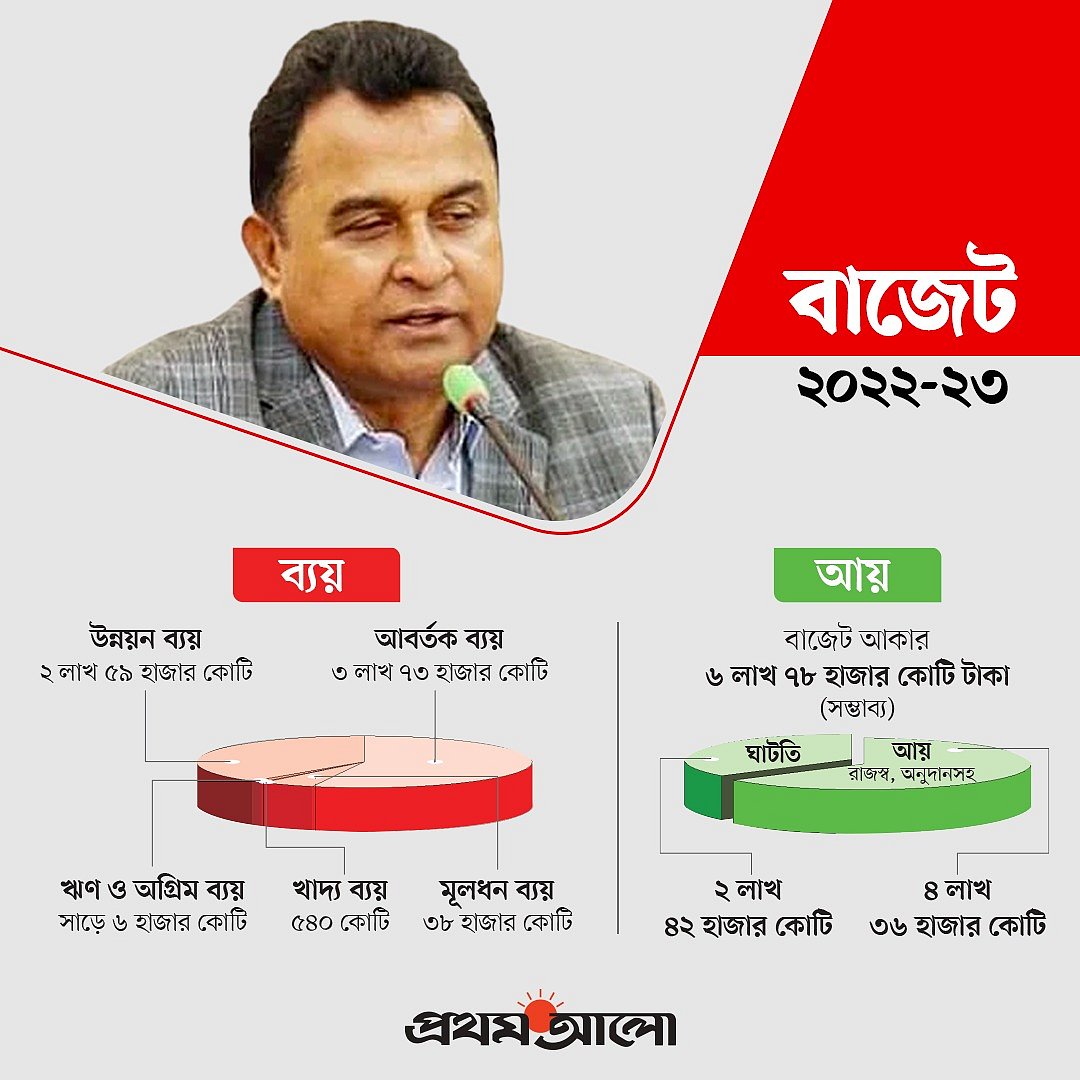 অর্থনীতির এ চাপ কাঁধে নিয়েই অর্থমন্ত্রী আ হ ম মুস্তফা কামাল আজ বৃহস্পতিবার জাতীয় সংসদে বাজেট উপস্থাপন করবেন। এটি তাঁর চতুর্থ বাজেট। আগামী ২০২২-২৩ অর্থবছরের জন্য তিনি যে বাজেট বক্তব্য দেবেন, তার নাম দিয়েছেন ‘কোভিডের অভিঘাত পেরিয়ে উন্নয়নের ধারাবাহিকতায় পরিবর্তন’।