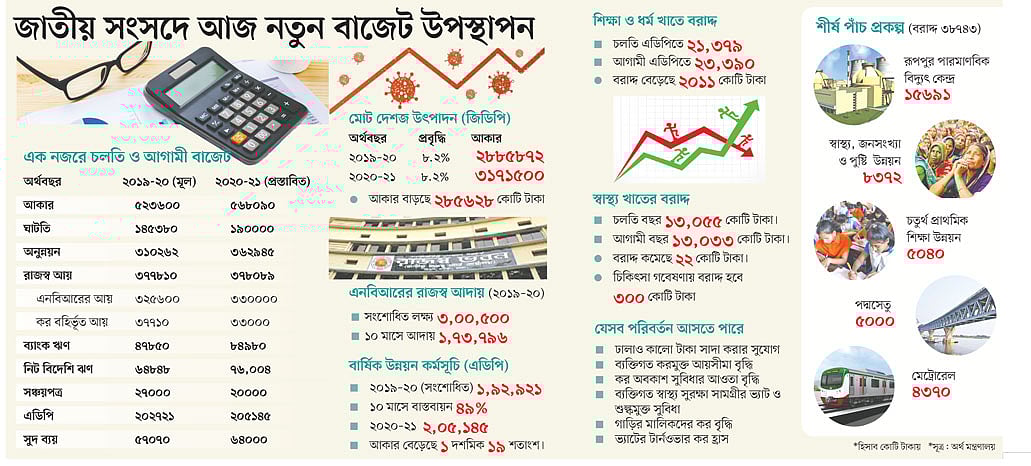 জানা গেছে, সাধারণ মানুষের মৌলিক চিকিৎসা, করোনার কারণে নতুন করে অতি গরিব হয়ে যাওয়া মানুষের অন্ন ও বিদেশ থেকে ফিরে আসা কয়েক লাখ মানুষের কাজের সংস্থানে কী করা হবে, সেই ব্যবস্থাও থাকছে না বাজেটে। যদিও ব্যবসা-বাণিজ্যের স্থবিরতা, আমদানি-রপ্তানির গতি কমে যাওয়া, উৎপাদনশীল কারখানা বন্ধ হওয়ার ব্যাপারে বিভিন্ন পদক্ষেপ থাকছে।