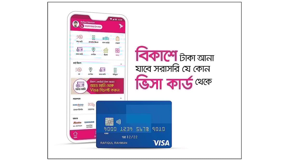ভিসা থেকে বিকাশে টাকা আনার এই অ্যাড মানি সার্ভিস গ্রাহকদের জন্য আরও উন্নত সেবা নিশ্চিত করবে এবং একই সঙ্গে বিকাশের মাধ্যমে মোবাইল রিচার্জ, সেন্ড মানি, পেমেন্ট, ইউটিলিটি বিল প্রদান, টিকিট কেনা, বিমার কিস্তি পরিশোধ, মানি ট্রান্সফার ইত্যাদির মতো প্রয়োজনীয় সেবার ব্যবহারে আরও স্বাচ্ছন্দ্য এনে দেবে।