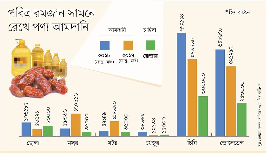 চাঁদ দেখা সাপেক্ষে আগামী ১৭ মে থেকে রোজা শুরু হতে পারে। অর্থাৎ রোজার এখনো দেড় মাস বাকি। সে পর্যন্ত চট্টগ্রাম বন্দরে প্রতিদিনই জাহাজ ও কনটেইনার থেকে খালাস হবে রোজার পণ্য।