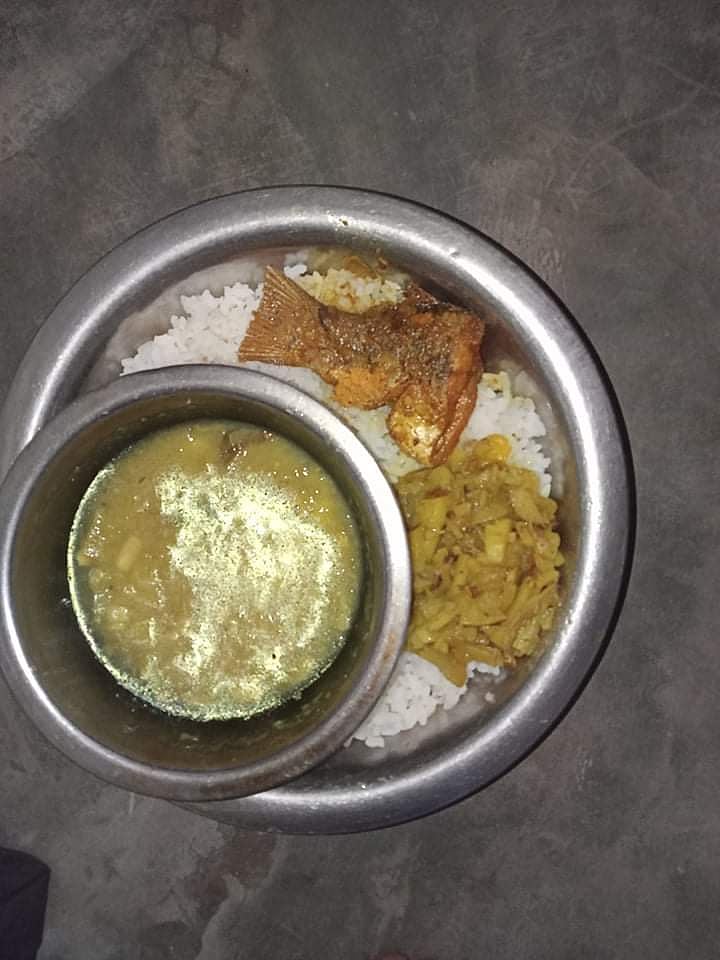 এগুলো রাজধানীর হাতিরঝিল থানার মিরবাগে ইউনুস মিয়ার রিকশার গ্যারেজের গতকাল মঙ্গলবার দুপুরের খাবারের পদ। বেলা দুইটার দিকে গিয়ে দেখা গেল, ৩০ জনের মতো রিকশাচালক খাচ্ছেন। কেউ কেউ অপেক্ষায়। খাবারের থালার দিকে তাকিয়ে দেখা যায়, মাছের টুকরাটি একেবারেই ছোট। ডালও পানির মতো পাতলা।