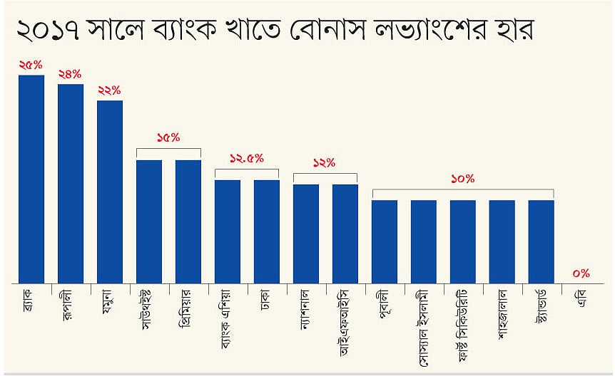 শেয়ারবাজারে তালিকাভুক্ত ব্যাংকগুলোর মধ্যে ডাচ্-বাংলা ব্যাংক ২০১৭ সালের জন্য শেয়ারধারীদের ৩০ শতাংশ নগদ লভ্যাংশ দেওয়ার ঘোষণা দিয়েছে। ব্যাংকটি ২০১৭ সালে ২৪৬ কোটি টাকা নিট মুনাফা করে। ট্রাস্ট ও উত্তরা ব্যাংক ২০ শতাংশ করে নগদ লভ্যাংশ দেয়। ব্যাংক দুটি যথাক্রমে ১৭৫ কোটি ও ১৫৩ কোটি টাকা নিট মুনাফা করে।