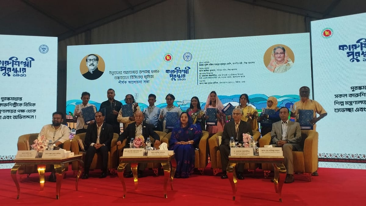 আজ সোমবার রাজধানীর একটি হোটেলে আয়োজিত ‘কারুশিল্প পুরস্কার ১৪৩০’ অনুষ্ঠানে এই পুরস্কার দেওয়া হয়। একই আয়োজনে ‘উন্নয়নের অগ্রযাত্রায় রূপকল্প ২০৪১ বাস্তবায়নে বিসিকের ভূমিকা’ শীর্ষক একটি আলোচনা সভাও অনুষ্ঠিত হয়।