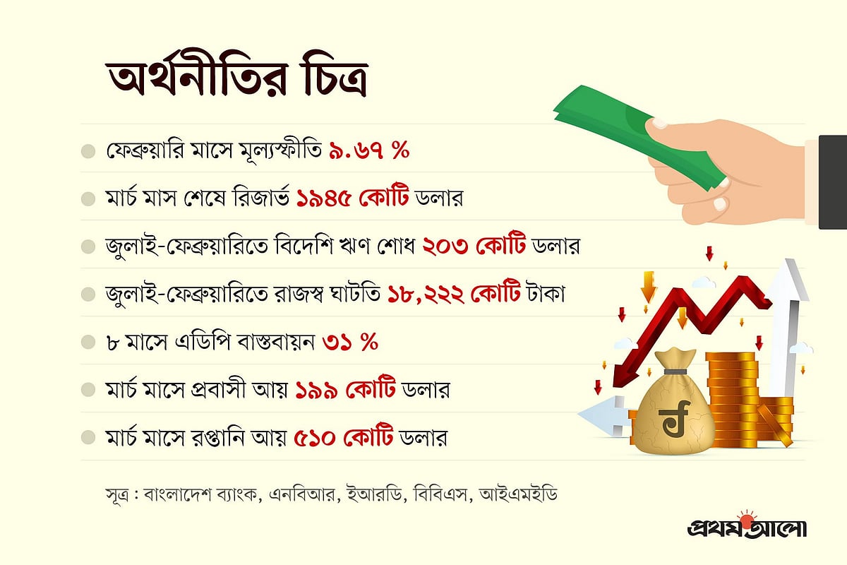রপ্তানি আয় ও প্রবাসী আয় কখনো বাড়ছে, কখনো কমছে। ডলার আসার অন্যতম প্রধান দুটি উৎস নিয়ে স্বস্তি আসেনি। বিদেশি ঋণ পরিশোধের চাপ ক্রমশ বাড়ছে। অর্থনীতিবিদেরা মনে করেন, সার্বিকভাবে অর্থনীতি বিপদগ্রস্ত নয়; তবে সংকট থেকে উত্তরণ হয়নি।
