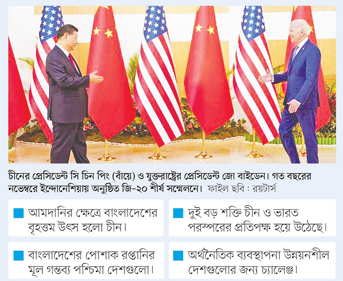 বিশ্বের দ্বিতীয় বৃহত্তম অর্থনীতি ও বৃহত্তম বাণিজ্যের দেশ হিসেবে চীনের বৈশ্বিক গুরুত্ব খাটো করে দেখা যাবে না। চীন যে কারণে অনন্য সেটা হলো, বাণিজ্য অংশীদার হিসেবে যেকোনো ধরনের পণ্য তৈরির ক্ষেত্রে তার বিপুল সক্ষমতা। শ্রমঘন শিল্পে পণ্য উৎপাদন থেকে শুরু করে উচ্চ প্রযুক্তির পণ্য—সব ক্ষেত্রেই এই সক্ষমতা রয়েছে। ধনী শিল্পায়িত দেশগুলোর তুলনায় চীনের মাথাপিছু আয় ও মজুরি এখনো অনেক কম, সে জন্য তারা এখনো শ্রমঘন শিল্পে উৎপাদিত পণ্য উন্নত দেশগুলোতে রপ্তানি করতে পারে। একই সঙ্গে তারা প্রযুক্তিঘন পণ্য তুলনামূলকভাবে সস্তায় উন্নত দেশগুলোতে রপ্তানি করতে পারে।