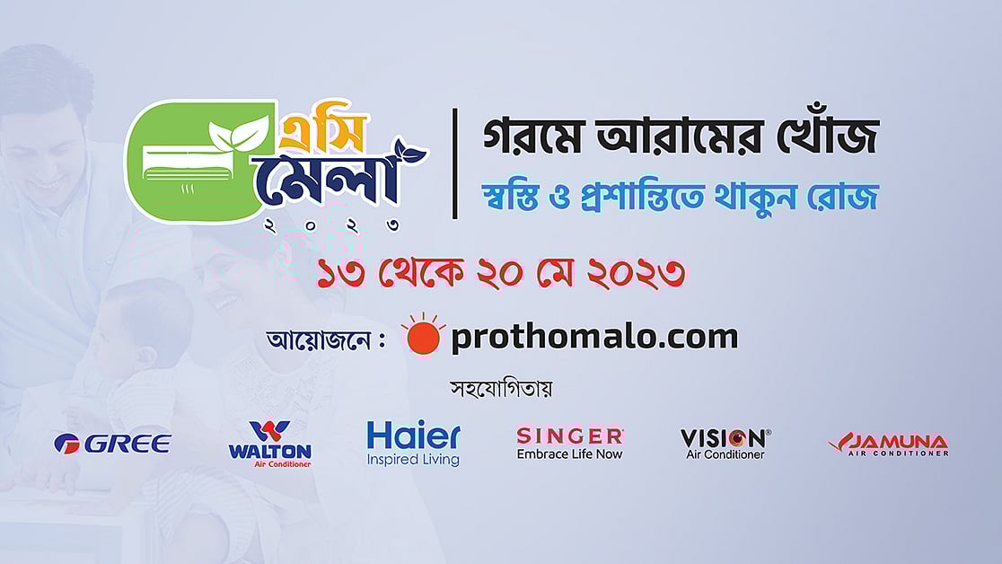 ‘গরমে আরামের খোঁজ, স্বস্তি ও প্রশান্তিতে থাকুন রোজ’ স্লোগানে আজ শনিবার থেকে অনলাইনে শীতাতপনিয়ন্ত্রণ যন্ত্রের (এসি) সপ্তাহব্যাপী মেলা শুরু হচ্ছে। প্রথম আলো ডটকম এই মেলার আয়োজন করেছে। এটি আয়োজনে সহযোগিতা করেছে এসি প্রস্তুতকারক ও বাজারজাতকারী প্রতিষ্ঠান গ্রি, হায়ার, ওয়ালটন, ভিশন, যমুনা ও সিঙ্গার।