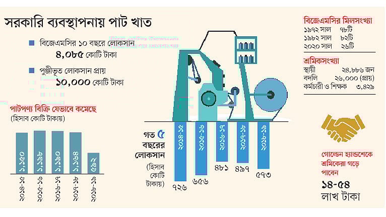 >মেশিনের কম উৎপাদনশীলতা, বেশি দামে কাঁচা পাট ক্রয়, পণ্যবৈচিত্র্য না থাকার সঙ্গে বিজেএমসির কর্মচারীদের অদক্ষতা লোকসানের বড় কারণ