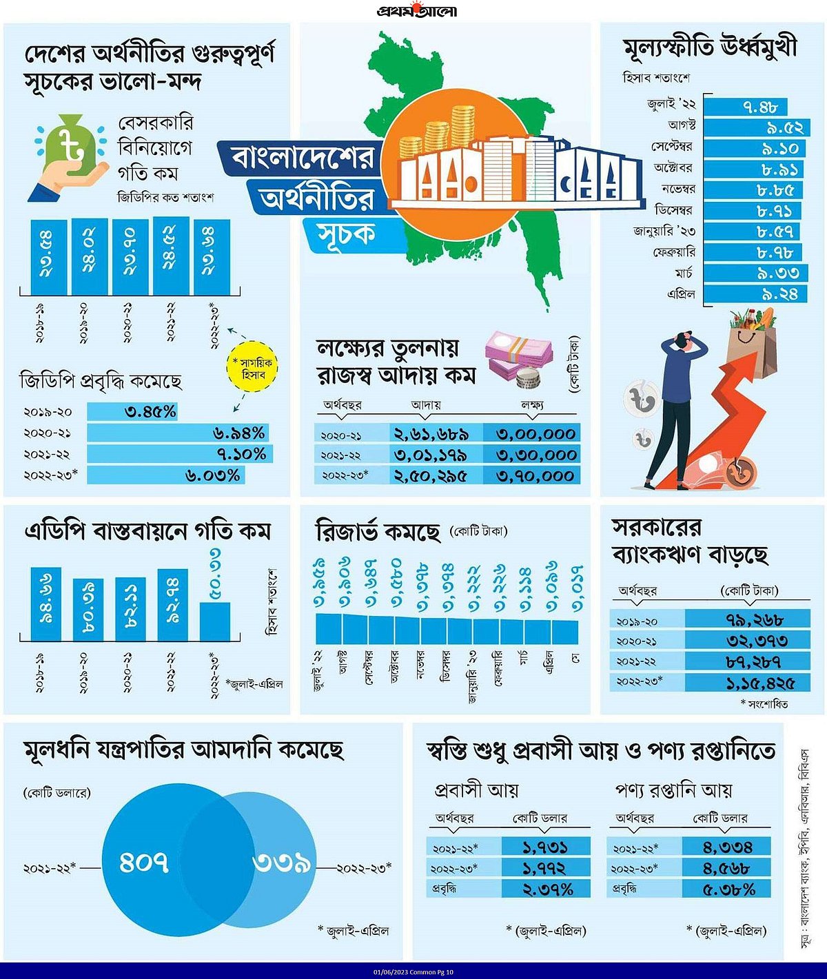 ডলার-সংকটে বিলাসপণ্যের আমদানি সংকোচনের উদ্যোগ নিয়েছিল বাংলাদেশ ব্যাংক। তাতে গত জুন থেকে এপ্রিল পর্যন্ত সময়ে মূলধনি যন্ত্রপাতির আমদানি কমেছে ৫৬ শতাংশ, আর মধ্যবর্তী পণ্য আমদানি কমেছে ৩১ শতাংশ। সুখবর নেই বেসরকারি বিনিয়োগেও। দাম বাড়ানো হলেও শিল্প খাতে জ্বালানিসংকটের সুরাহা হয়নি। ব্যবসায়ীরা চান করপোরেট কর আরও কমানো হোক। কিন্তু আইএমএফ আবার করছাড়ের বিপক্ষে।