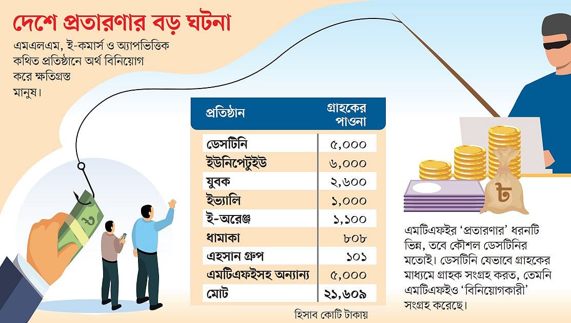 টাকা ফেরত পাননি ডেসটিনি, যুবকের মতো প্রতিষ্ঠানের গ্রাহকেরা। এমটিএফইর প্রতারণার দায় নিচ্ছে না কেউ।