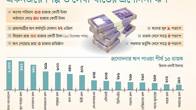 বড় গ্রাহকদের করোনাভাইরাসজনিত আর্থিক ক্ষতি মোকাবিলায় সাড়ে ৪ শতাংশ সুদে ঋণ দিচ্ছে ব্যাংকগুলো। শিল্প ও সেবা খাতের এই গ্রাহকদের বাকি সাড়ে ৪ শতাংশ সুদ ভর্তুকি দিচ্ছে সরকার। কম সুদের এই ঋণের সুযোগ হাতছাড়া করতে চায়নি কেউই। দফায় দফায় খেলাপি হওয়া ও পুনর্গঠন–সুবিধা নেওয়া ব্যবসায়ীরা যেমন এই ঋণ নিয়েছেন, তেমনি ভালো ব্যবসায়ীরাও তা পেয়েছেন।