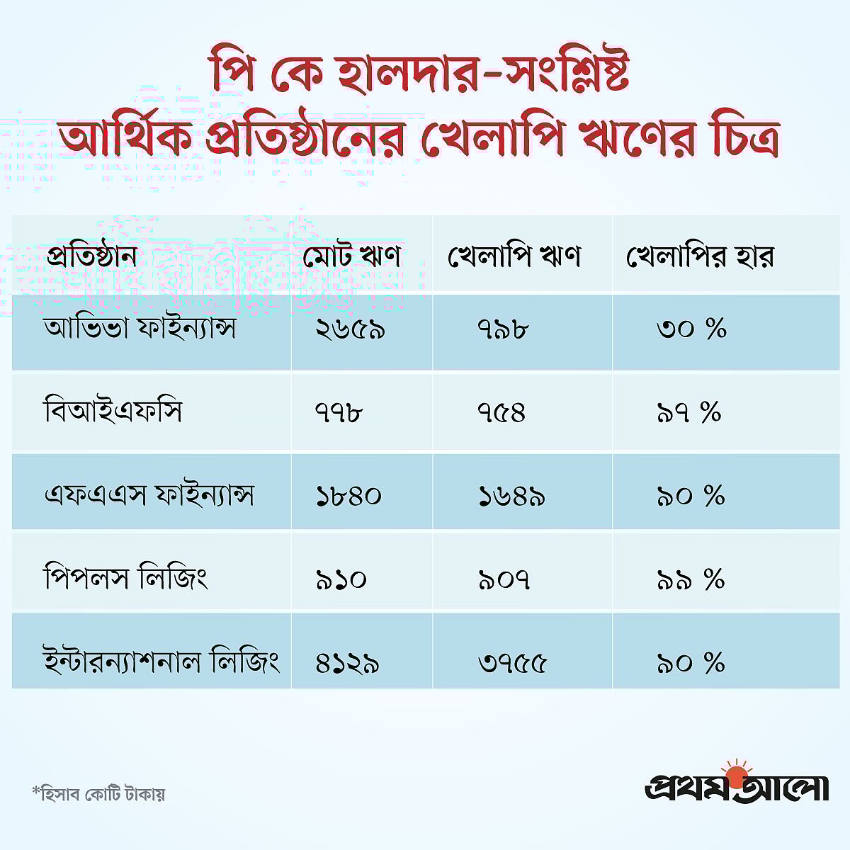কার ঋণ, কত খেলাপি