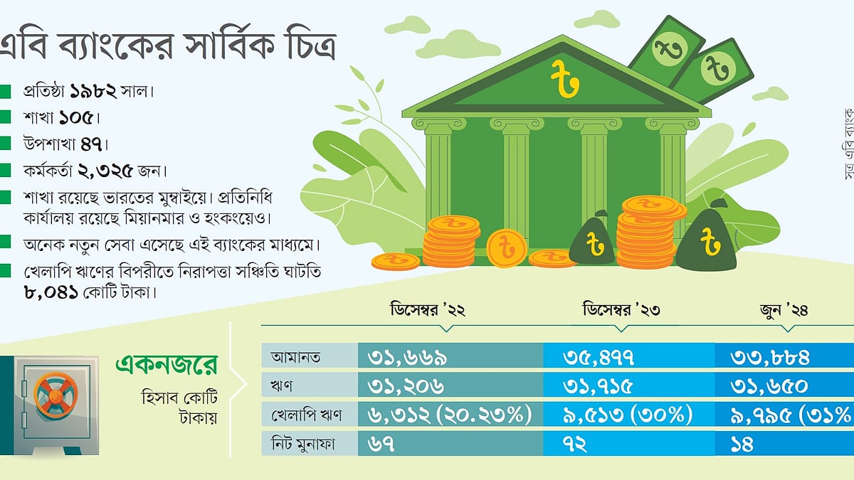 সেবায় উৎকর্ষ ঘটিয়ে একসময় গ্রাহক আকর্ষণে অন্যতম সেরা হয়ে উঠেছিল প্রথম প্রজন্মের এবি ব্যাংক। এর নেপথ্যে ছিলেন কর্মকর্তারা। ফলে ব্যাংকটি বিভিন্ন সূচকে বেশ এগিয়ে যায়। কিন্তু পরে শীর্ষ কর্মকর্তাদের অনিয়ম-দুর্নীতি এবং উদ্যোক্তাদের অনৈতিক সুবিধা নেওয়ার কারণে ব্যাংকটির আর্থিক সূচক ভঙ্গুর হয়ে পড়ে। বিশেষ করে খেলাপি ঋণ বেড়ে এমন পর্যায়ে পৌঁছেছে যে চাহিদামতো নিরাপত্তা সঞ্চিতি রাখলে এই ব্যাংককে এখন ৮ হাজার কোটি টাকা লোকসান গুনতে হবে।