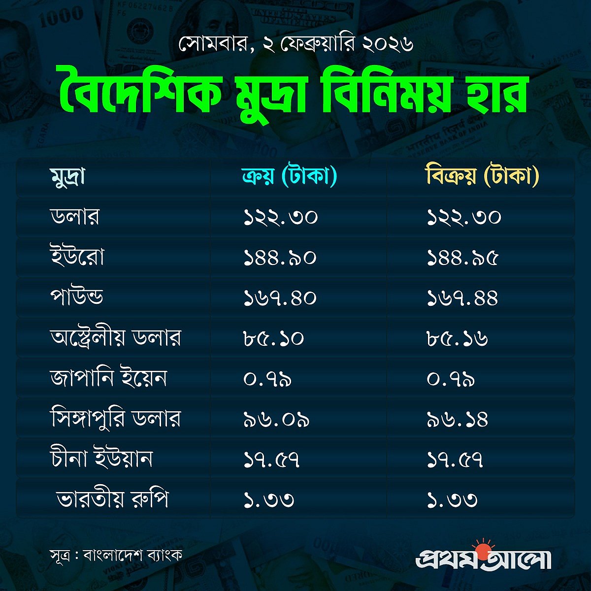বাংলাদেশ ব্যাংকের তথ্যানুসারে, আজ ডলারের সর্বোচ্চ দাম ১২২ টাকা ৩০ পয়সা। সর্বনিম্ন ও সর্বোচ্চ দামও একই—১২২ টাকা ৩০ পয়সা। বিশ্ববাজারে ডলারের দাম কমলেও দেশের বাজারে কয়েক মাস ধরেই ডলারের দাম স্থিতিশীল।