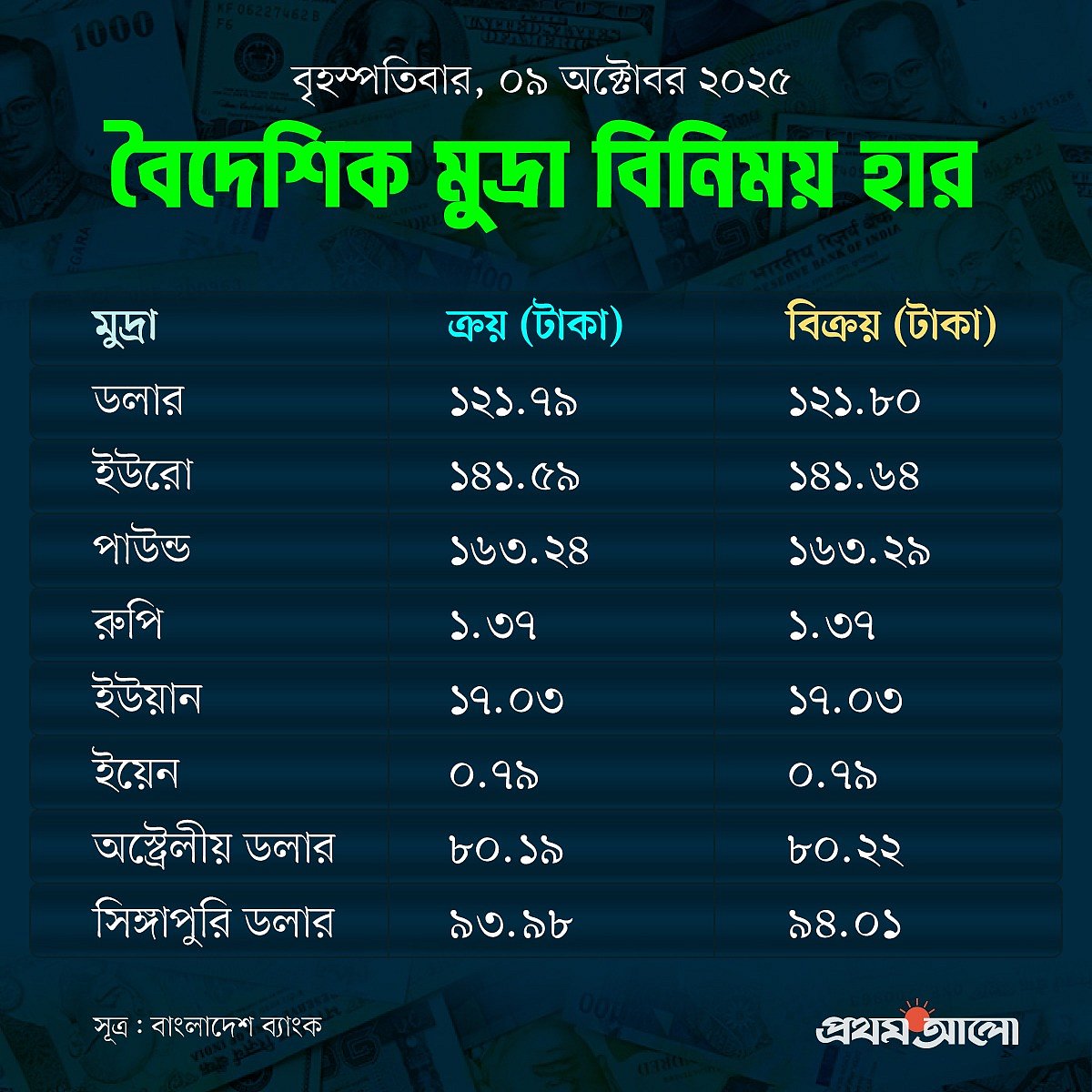 আজ দেশের মুদ্রাবাজারে মিশ্র ধারা দেখা যাচ্ছে। প্রধান মুদ্রাগুলোর মধ্যে দাম বেড়েছে ইউরো, পাউন্ড ও অস্ট্রেলীয় ডলারের। অপরিবর্তিত আছে রুপির দাম। দাম কমেছে ইউয়ান, ইয়েন ও সিঙ্গাপুরি ডলারের।