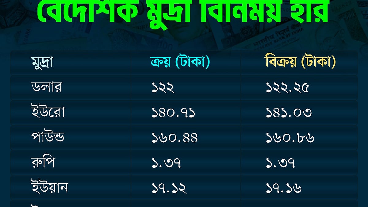 আজ রোববার সপ্তাহের প্রথম কার্যদিবসে দেশের মুদ্রাবাজারে লেনদেন চলছে। গত সপ্তাহের শেষ কার্যদিবস বৃহস্পতিবারের মতো আজও ডলারের দাম কমেছে।