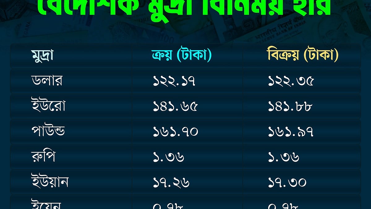 আজ দেশের মুদ্রাবাজারে মিশ্রধারা দেখা যাচ্ছে। যেসব মুদ্রার দাম বেড়েছে, তার মধ্যে আছে অস্ট্রেলীয় ডলার ও ইউয়ান। দাম কমেছে ইউরো, পাউন্ড ও রুপির। অপরিবর্তিত আছে ইয়েনের দাম।