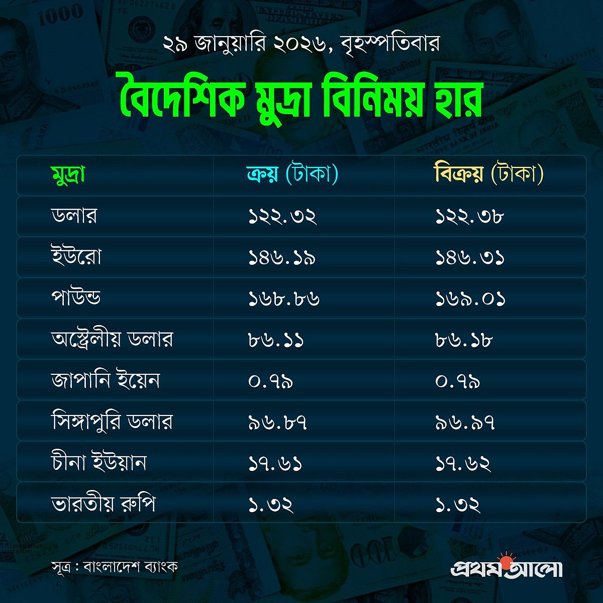 আজ বৃহস্পতিবার সপ্তাহের পঞ্চম কার্যদিবসে দেশের মুদ্রাবাজারে লেনদেন চলছে। আজও বাজারে ডলারের দাম অপরিবর্তিত আছে। এ নিয়ে টানা দুই দিন ডলারের দাম অপরিবর্তিত আছে।