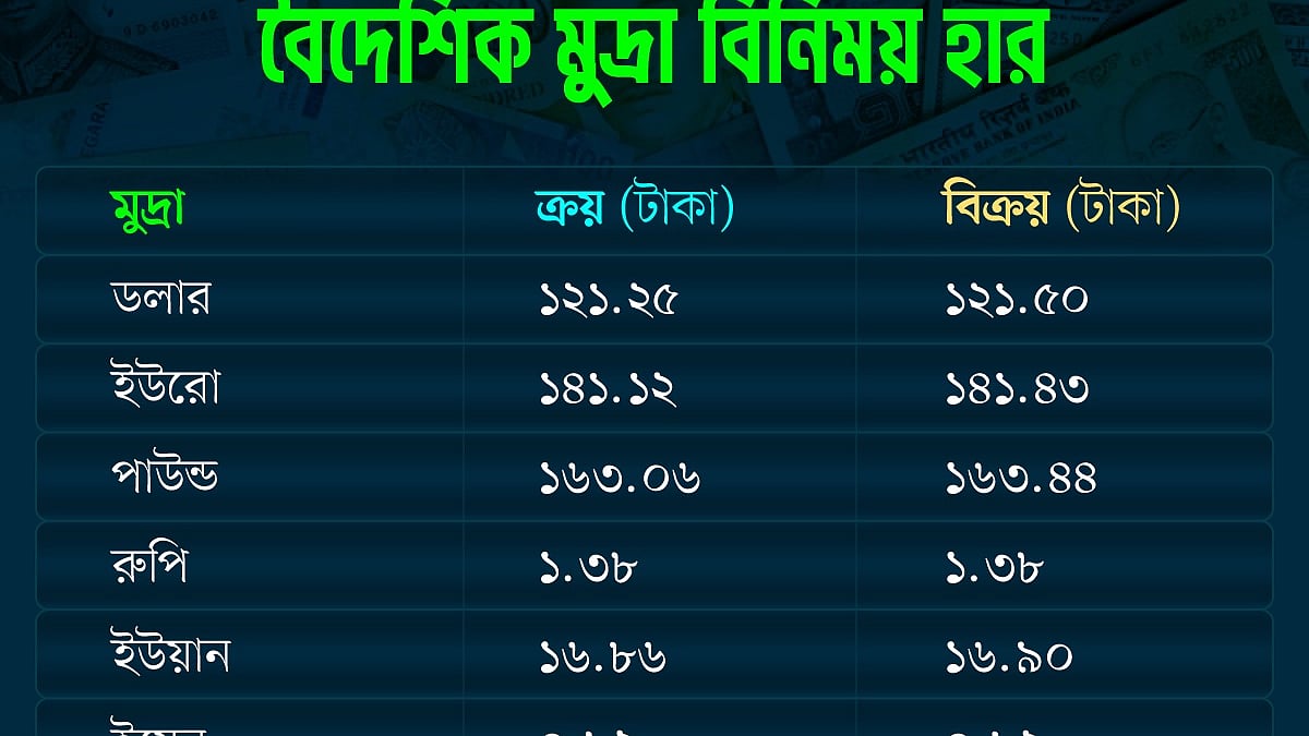 আজ দেশের মুদ্রাবাজারে মিশ্র ধারা দেখা যাচ্ছে। কিছু মুদ্রার দাম বেড়েছে, কিছু মুদ্রার কমেছে; অপরিবর্তিত আছে একাধিক মুদ্রা। দাম বাড়ার তালিকায় আছে পাউন্ড ও অস্ট্রেলীয় ডলার। অপরিবর্তিত আছে ইয়েনের দাম। দাম কমেছে রুপি, ইউরো, ইউয়ান ও সিঙ্গাপুরি ডলারের দাম।