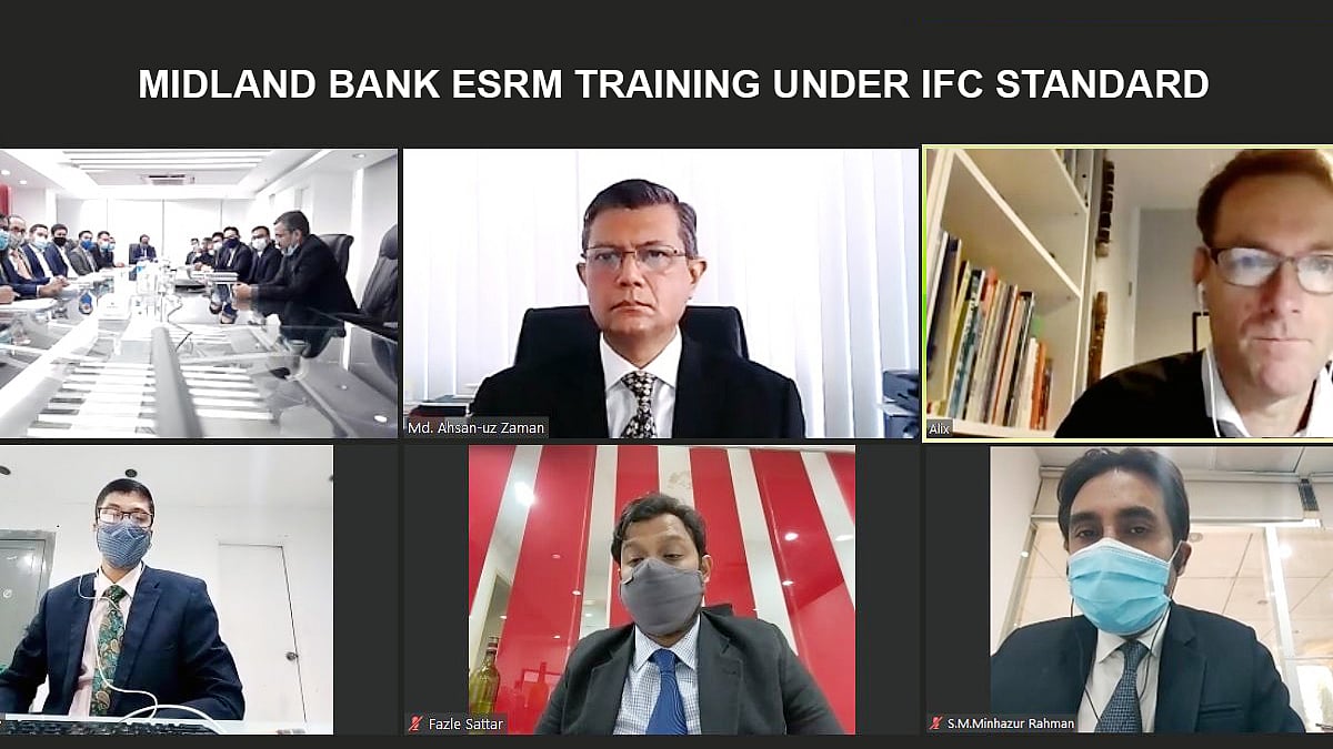 মিডল্যান্ড ব্যাংক লিমিটেড (এমডিবি) ডিজিটাল প্ল্যাটফর্মের মাধ্যমে ‘পরিবেশগত ও সামাজিক ঝুঁকি ব্যবস্থাপনা (ইএসআরএম) প্রশিক্ষণ’ শীর্ষক দুই দিনব্যাপী এক প্রশিক্ষণ অনুষ্ঠিত হয়। ব্যাংকটির নির্বাহী ও কর্মকর্তাদের জন্য আইএফসি পারফরম্যান্স মান মেলাতে এ আয়োজন করা হয়। ৩১ জানুয়ারি থেকে ১ ফেব্রুয়ারি ছিল এ প্রশিক্ষণ।