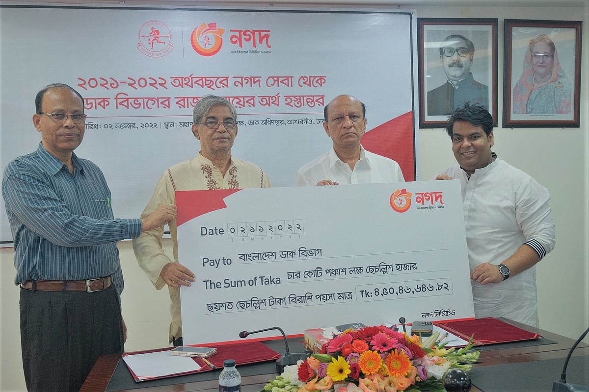 ‘নগদ’ প্রতিবছরের মতো এবারও রাজস্ব ভাগাভাগি করেছে। ২০২১-২২ অর্থবছরের আয় থেকে ৪ কোটি ৫০ লাখ ৪৬ হাজার টাকার রাজস্ব ডাক বিভাগকে বুঝিয়ে দিয়েছে তারা।