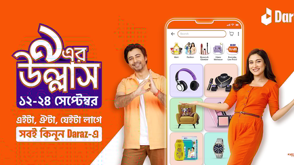 ‘এইটা, ঐটা, যেইটা লাগে, সবই কিনুন দারাজ-এ’ স্লোগানে আজ মঙ্গলবার থেকে শুরু হয়েছে দারাজের ‘৯-এর উল্লাস’ প্রচারণাটি, যা চলবে ২৪ সেপ্টেম্বর পর্যন্ত।