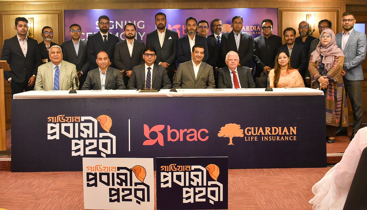 দেশের রেমিট্যান্স যোদ্ধাদের আর্থিক নিরাপত্তা নিশ্চিত করতে ব্র্যাক ও গার্ডিয়ান লাইফ ইনস্যুরেন্স লিমিটেড একটি চুক্তি সই করেছে। রাজধানীর গুলশানে কনকর্ড পুলিশ প্লাজা, মেট্রোপলিটন চেম্বার অব কমার্স অ্যান্ড ইন্ডাস্ট্রিতে (এমসিসিআই) আয়োজিত এক অনুষ্ঠানে উন্মোচিত হয় ‘গার্ডিয়ান প্রবাসী প্রহরী’ বিমা পলিসি।