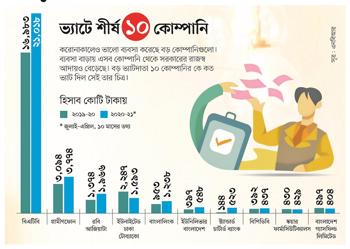 শুধু মোবাইল ফোন নয়; করোনাকালে দেশের বড় বড় খাতের বড় কোম্পানিগুলো ভালো ব্যবসা করেছে। ভালো ব্যবসা করে এসব কোম্পানি সরকারি কোষাগারে আগের বছরের চেয়ে শুল্ক-করও বেশি দিয়েছে। করোনার বছরে ভালো ব্যবসা করা বড় খাতগুলোর মধ্যে আছে সিগারেট, মোবাইল ফোন, ওষুধ, সিমেন্ট, ব্যাংক ও আর্থিক খাত, খাদ্য ও খাদ্যজাত পণ্য এবং পানীয় খাত। ভ্যাট আদায়ের তথ্য বলছে, এসব খাতের বড় বড় কোম্পানি আগের চেয়ে বেশি ব্যবসা করে বেশি ভ্যাট দিয়েছে সরকারকে।