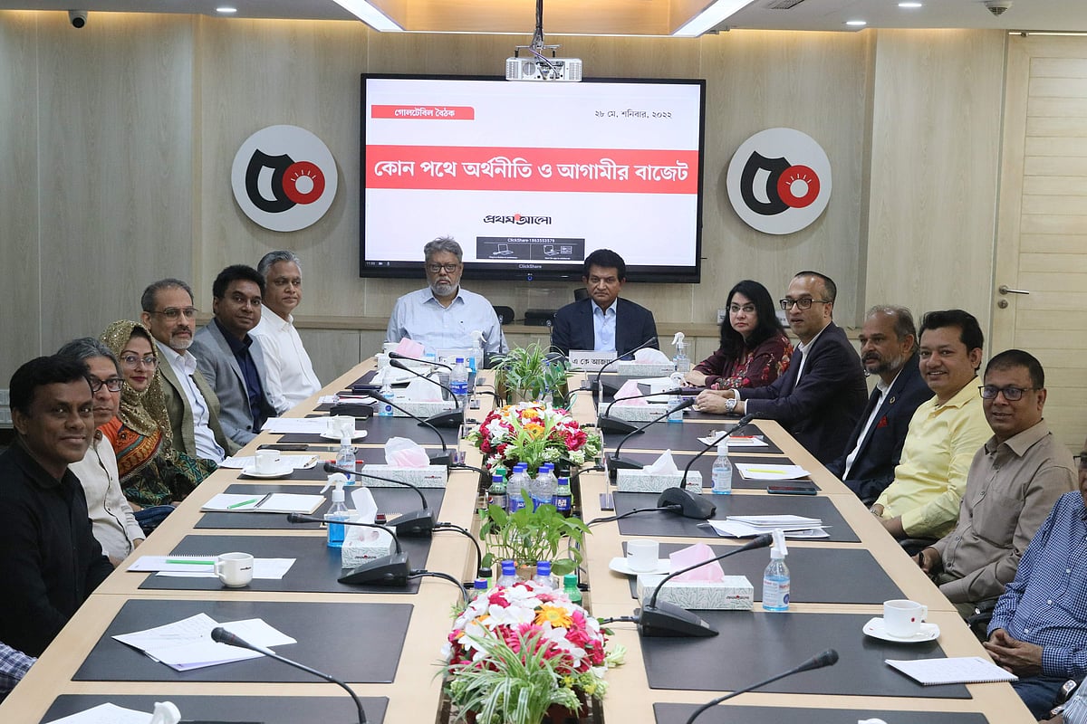 প্রথম আলোর আয়োজনে ‘কোন পথে অর্থনীতি ও আগামীর বাজেট’ শীর্ষক গোলটেবিল বৈঠকে অংশ নিয়ে অর্থনীতিবিদ, ব্যবসায়ী ও ব্যাংকাররা এসব কথা বলেন। রাজধানীর কারওয়ান বাজারে প্রথম আলো কার্যালয়ে আজ শনিবার অনুষ্ঠিত এ বৈঠক সঞ্চালনা করেন প্রথম আলোর হেড অব অনলাইন শওকত হোসেন। বৈঠকে প্রথম আলোর সম্পাদক মতিউর রহমান, ব্যবস্থাপনা সম্পাদক সাজ্জাদ শরিফসহ প্রথম আলোর জ্যেষ্ঠ কর্মীরা উপস্থিত ছিলেন। প্রায় তিন ঘণ্টাব্যাপী চলে এ আলোচনা।
