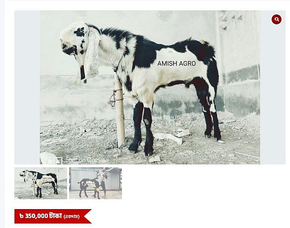 ঢাকা উত্তর সিটি করপোরেশনের উদ্যোগে আয়োজিত ডিজিটাল পশুর হাটে বিক্রির জন্য উঠেছে সাড়ে তিন লাখ টাকা দামের ছাগল। এখন পর্যন্ত এটিই এ হাটে সর্বোচ্চ দামের ছাগল। বিটল জাতের এ ছাগলের ওজন ১৪৫ কেজি। সাড়ে তিন লাখ টাকা দাম হাঁকা হলেও এখন পর্যন্ত ছাগলটি কিনতে সর্বোচ্চ ২ লাখ ১৫ হাজার টাকা দাম প্রস্তাব করেছেন একজন ক্রেতা। কিন্তু ছাগলটি এখনো বিক্রি হয়নি।
