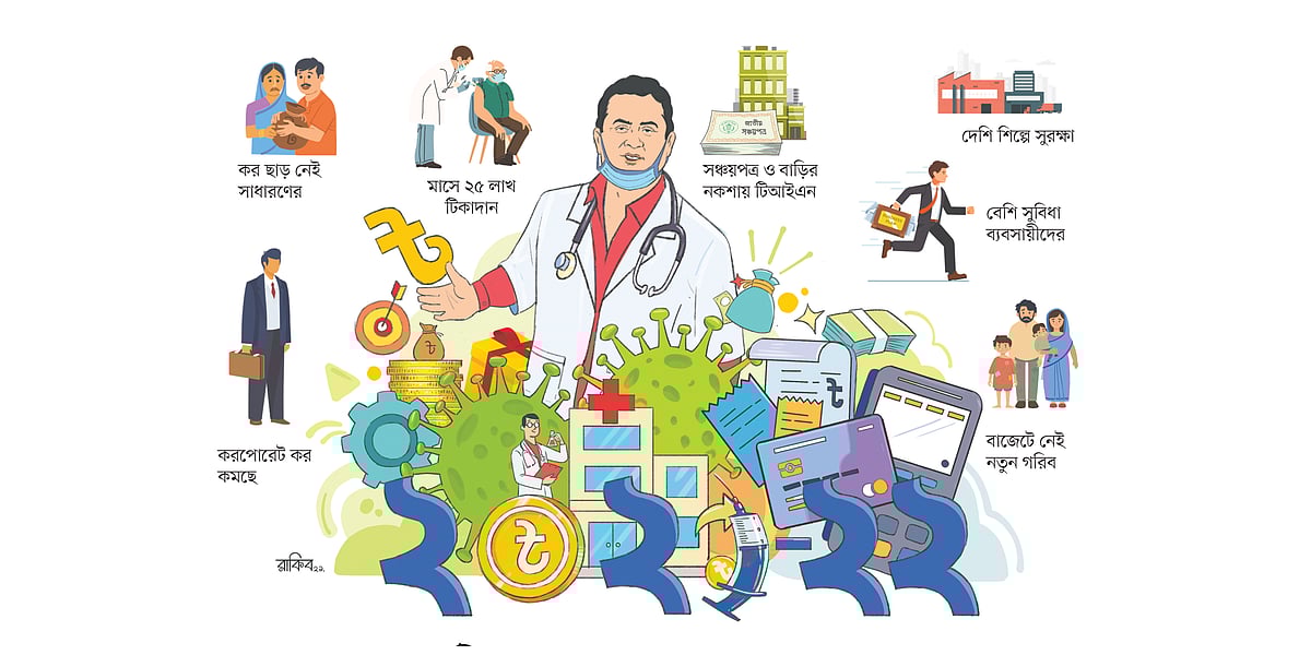 অর্থমন্ত্রী নতুন অর্থবছরের বাজেটের শিরোনাম দিয়েছেন, ‘জীবন-জীবিকার প্রাধান্য দিয়ে সুদৃঢ় আগামীর পথে বাংলাদেশ’। অর্থাৎ জীবন বাঁচাতে হবে, রক্ষা করতে হবে জীবিকাকেও। মাসে ২৫ লাখ টিকা দেওয়ার নিশ্চয়তা যেমন নেই, তেমনি জীবিকা বাঁচানোর সরাসরি পরিকল্পনার কথাও বাজেটে নেই। নানা ধরনের কর ছাড় পেয়ে ব্যবসায়ীরা উদ্যোগ বাড়াবেন, বাড়বে বিনিয়োগ, উৎপাদন বৃদ্ধি পাবে, এতে বাড়বে কর্মসংস্থান—আদ্যিকালের সেই উপচে পড়া নীতির ওপরই সম্ভবত অর্থমন্ত্রী ভরসা রেখেছেন।
