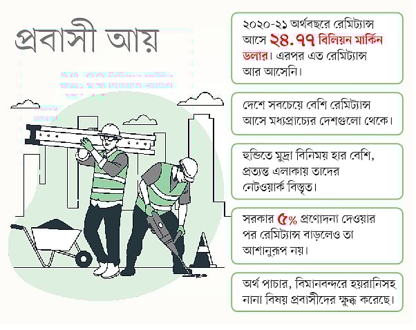 বাংলাদেশ থেকে বিদেশে অভিবাসী কর্মী পাঠানো বাড়লেও সেভাবে রেমিট্যান্স বাড়েনি। এ জন্য হুন্ডিকেই মোটাদাগে দায়ী করা হয়; কিন্তু হুন্ডি বন্ধে কার্যকর পদক্ষেপ নেই। পাশাপাশি সহজে ও ন্যায্য মুদ্রা বিনিময় মূল্যে শ্রমিকেরা যাতে দেশে অর্থ পাঠাতে পারেন, সেই ব্যবস্থাও গড়ে ওঠেনি। অর্থ পাচার, বিমানবন্দরে হয়রানিসহ নানা বিষয় শ্রমিকদের ক্ষুব্ধ করে তুলেছে।