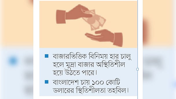 বাংলাদেশ ব্যাংক মনে করছে, বাজারভিত্তিক বিনিময় হার চালু হলে মুদ্রা বাজার অস্থিতিশীল হয়ে উঠতে পারে। ডলারের দাম বেড়ে গেলে আমদানি পণ্যের দাম আরও বাড়বে। দেশে যেখানে এমনিতেই মূল্যস্ফীতির হার ৯ শতাংশের বেশি, তা আরও বেড়ে যেতে পারে।