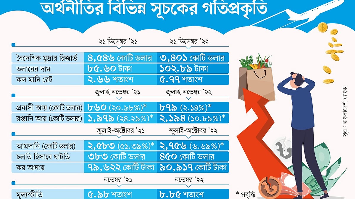 সব মিলিয়ে বছরের শুরু থেকেই অর্থনীতি নিয়ে নানা দুশ্চিন্তা ছিল। কিন্তু এখন ভীষণ দুশ্চিন্তার সঙ্গে যুক্ত হয়েছে ঘোরতর অনিশ্চয়তা। উচ্চ প্রবৃদ্ধির নেশায় অর্থনীতির অনেক দুর্বলতাই আড়াল করে রাখা ছিল। সংস্কারের কোনো উদ্যোগও ছিল না। কিন্তু অর্থনীতির সংকট শুরু হওয়ায় অর্থনীতির সব ক্ষত একবারেই বের হয়ে এসেছে। সুতরাং বলাই যায়, সবকিছুর জন্যই কোভিড ও যুদ্ধকে দায়ী করা যাবে না। নিজেদের দায় নিতে হবে। আর এটাই হচ্ছে ২০২২ সালের বড় শিক্ষা।