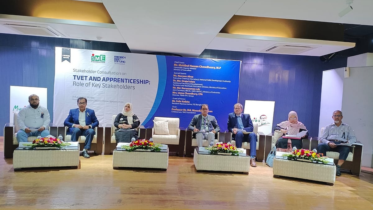 আজ সোমবার সকালে রাজধানীর আগারগাঁওয়ে পর্যটন ভবনে ক্ষুদ্র ও মাঝারি শিল্প (এসএমই) খাতের উন্নয়নে কারিগরি শিক্ষার ভূমিকা বিষয়ে আয়োজিত এক সেমিনারে এসব কথা বলেন বক্তারা। এসএমই ফাউন্ডেশন ও জার্মান উন্নয়ন সংস্থা ফ্রেডরিক ইবার্ট স্টিফটুং (এফইএস) যৌথভাবে এ সেমিনারের আয়োজন করে।