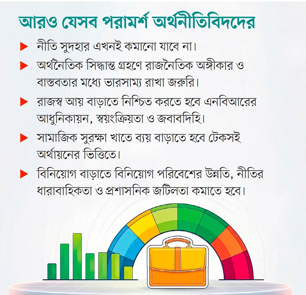 অর্থনীতিবিদেরা বলেন, সামাজিক সুরক্ষা খাতে ব্যয় বাড়াতে হবে, টেকসই অর্থায়নের ভিত্তিতে। অন্যথায় বাজেট–ঘাটতি ও ঋণের চাপ বাড়তে পারে।
