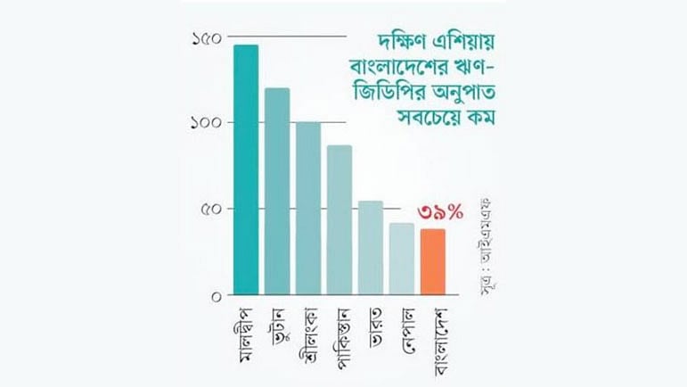 প্রতিবেদনের ভাষ্যমতে, বাংলাদেশের অবস্থান দক্ষিণ এশিয়ার অন্যান্য ছোট দেশের তুলনায় অনেক ভালো। ফাইন্যান্সিয়াল টাইমস–এর প্রতিবেদনে দেখানো হয়েছে, দক্ষিণ এশিয়ার দেশগুলোর মধ্যে বাংলাদেশের ঋণ-জিডিপির অনুপাত সবচেয়ে কম—৩৯ শতাংশ, যদিও সরকারের হিসাবে তা এর চেয়েও কম। এ ছাড়া সম্প্রতি আইএমএফও বলেছে, বাংলাদেশ সংকটজনক পরিস্থিতিতে নেই, তবে বৈশ্বিক অর্থনৈতিক পরিস্থিতির কারণে বড় ধরনের অনিশ্চয়তা আছে।