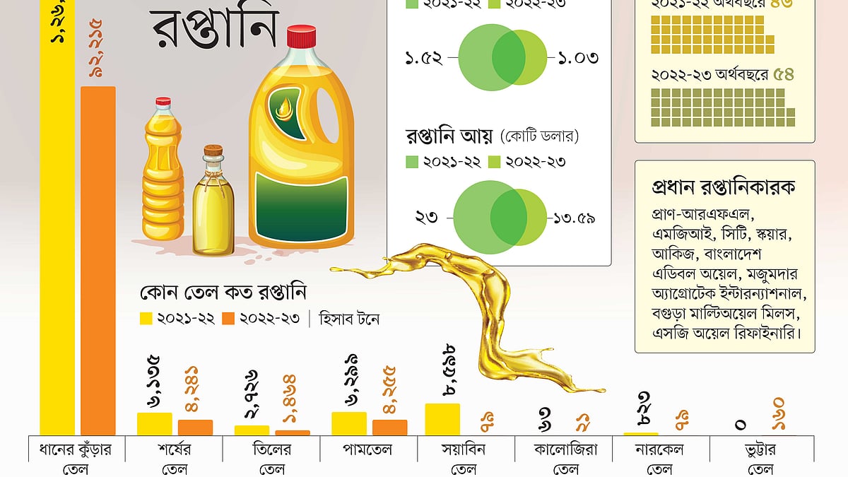 পাঁচ বছর ধরে একটানা এ ধরনের তেল রপ্তানি বাড়ছিল। কিন্তু সর্বশেষ গত ২০২২–২৩ অর্থবছরে বাংলাদেশে উৎপাদিত তেলের রপ্তানি হোঁচট খেয়েছে।