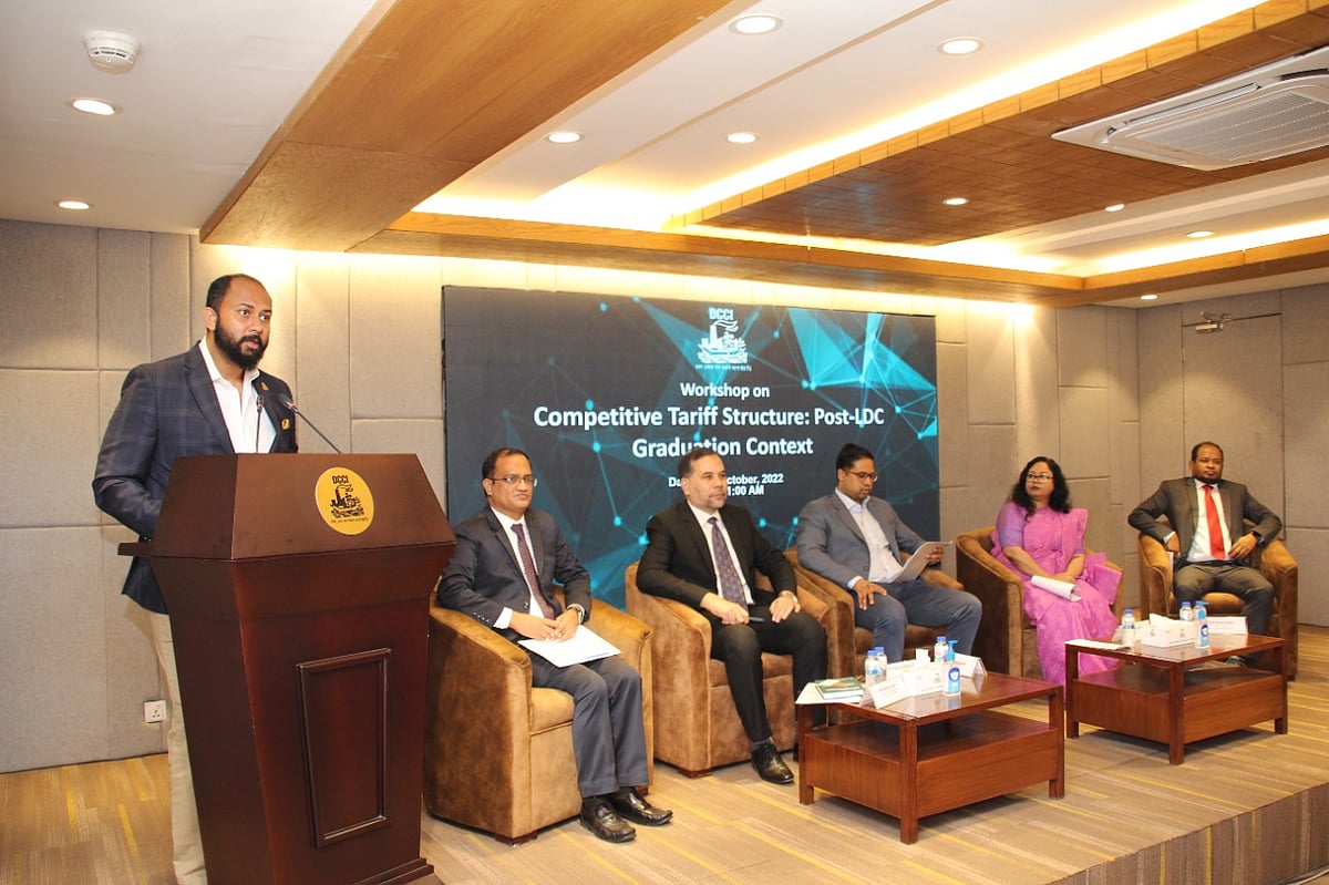 ঢাকা চেম্বার আয়োজিত ‘প্রতিযোগিতামূলক শুল্ককাঠামো: প্রেক্ষিত স্বল্পোন্নত দেশে উত্তরণ’ শীর্ষক কর্মশালায় বক্তারা এসব কথা বলেন। ঢাকা চেম্বারে বুধবার অনুষ্ঠিত এ কর্মশালায় মূল প্রবন্ধ উপস্থাপন করেন বাংলাদেশ ট্রেড অ্যান্ড ট্যারিফ কমিশনের যুগ্ম প্রধান মো. মশিউল ইসলাম। আলোচক ছিলেন বাংলাদেশ ট্রেড অ্যান্ড ট্যারিফ কমিশনের সদস্য শীষ হায়দার চৌধুরী, বাণিজ্য মন্ত্রণালয়ের যুগ্ম সচিব ফারহানা আইরিছ, জাতীয় রাজস্ব বোর্ডের (এনবিআর) প্রথম সচিব মো. নিয়োমুল ইসলাম।