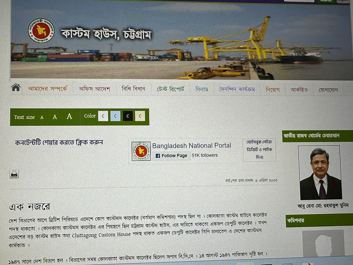 চট্টগ্রাম কাস্টম হাউসের ওয়েবসাইটের ‘এক নজরে’ অংশে এভাবে ইতিহাসভিত্তিক তথ্য দিতে গিয়ে সাবেক কালেক্টর পদধারীদের নামের পাশে এসব শব্দ ব্যবহার করে অদ্ভুতভাবে পরিচয় করে দেওয়া হয়েছে। সাবেক কর্মকর্তাদের অদ্ভুতভাবে পরিচিতি সম্পর্কে জানতে চাইলে চট্টগ্রাম কাস্টম হাউসের ওয়েবসাইটে যেতে হবে।