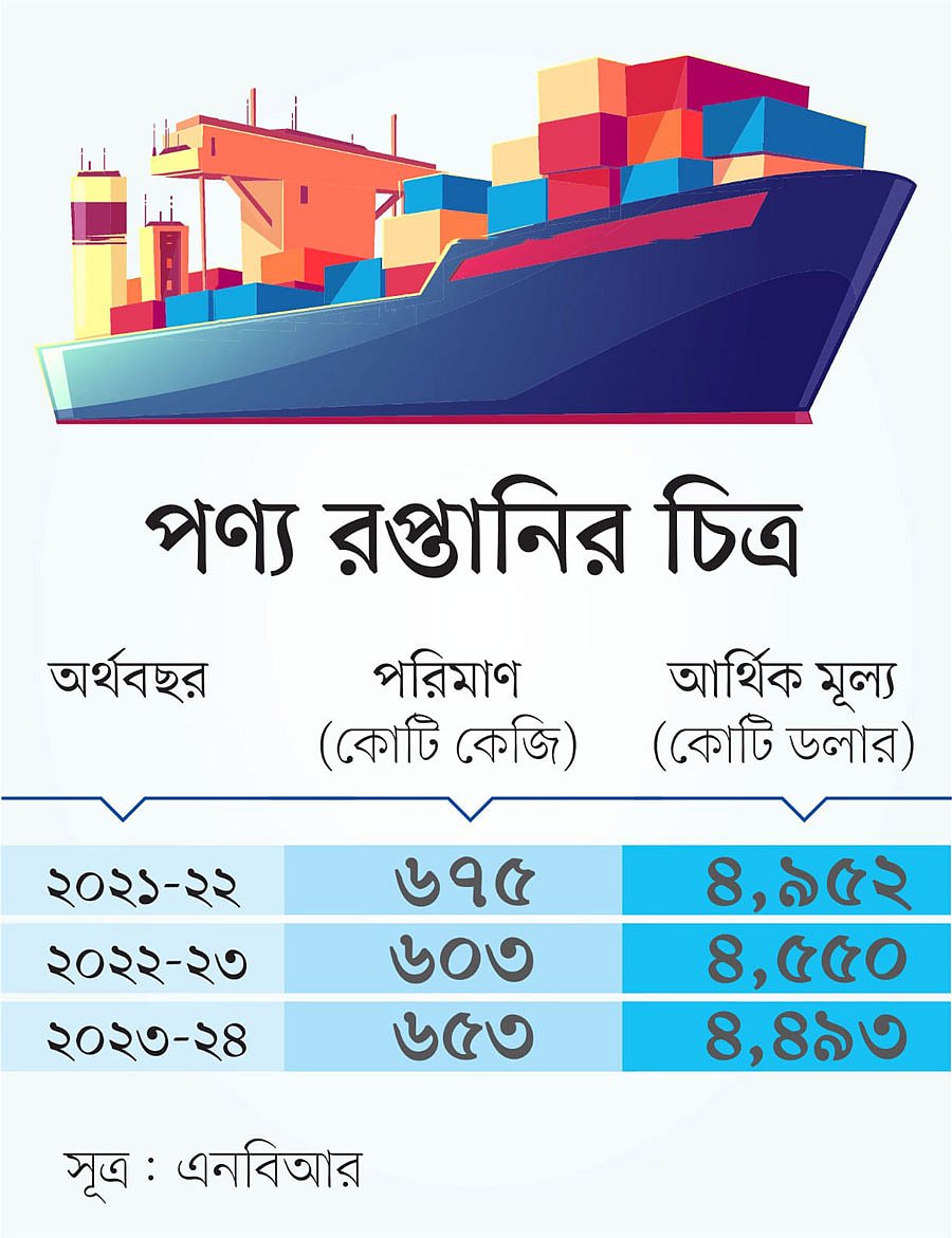 যদিও ইপিবির তথ্যানুযায়ী, সদ্য বিদায়ী অর্থবছরের প্রথম ১০ মাসে ৪ হাজার ৭৪৭ কোটি ডলারের রপ্তানি হয়েছে। এ ক্ষেত্রে প্রবৃদ্ধি প্রায় ৪ শতাংশ। তার আগের ২০২২-২৩ অর্থবছরের প্রথম ১০ মাসে রপ্তানি হয় ৪ হাজার ৫৬৭ কোটি ডলার। তখন প্রবৃদ্ধি ছিল ৫ শতাংশের বেশি।